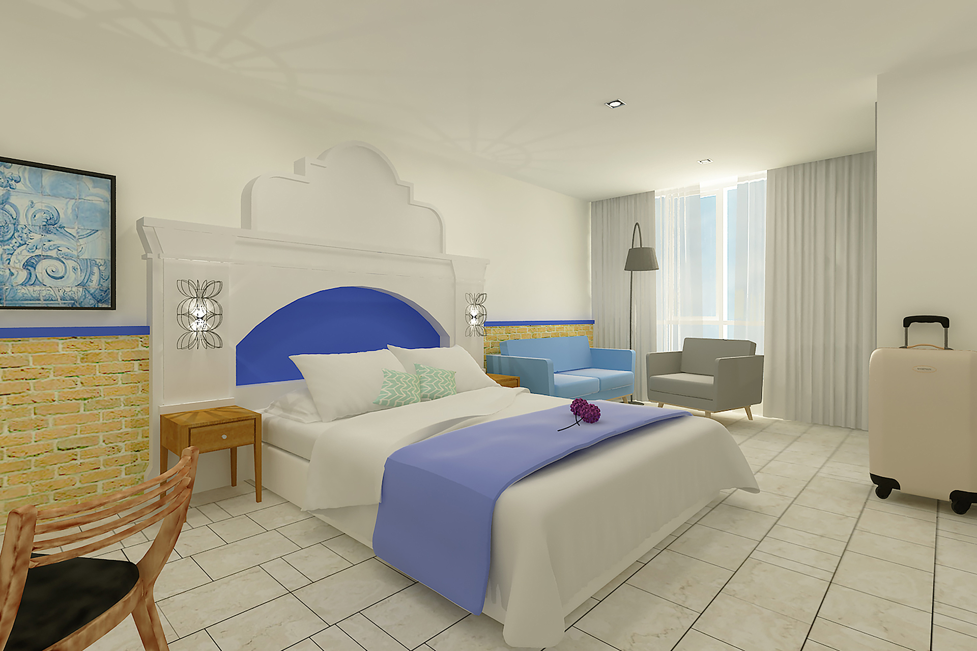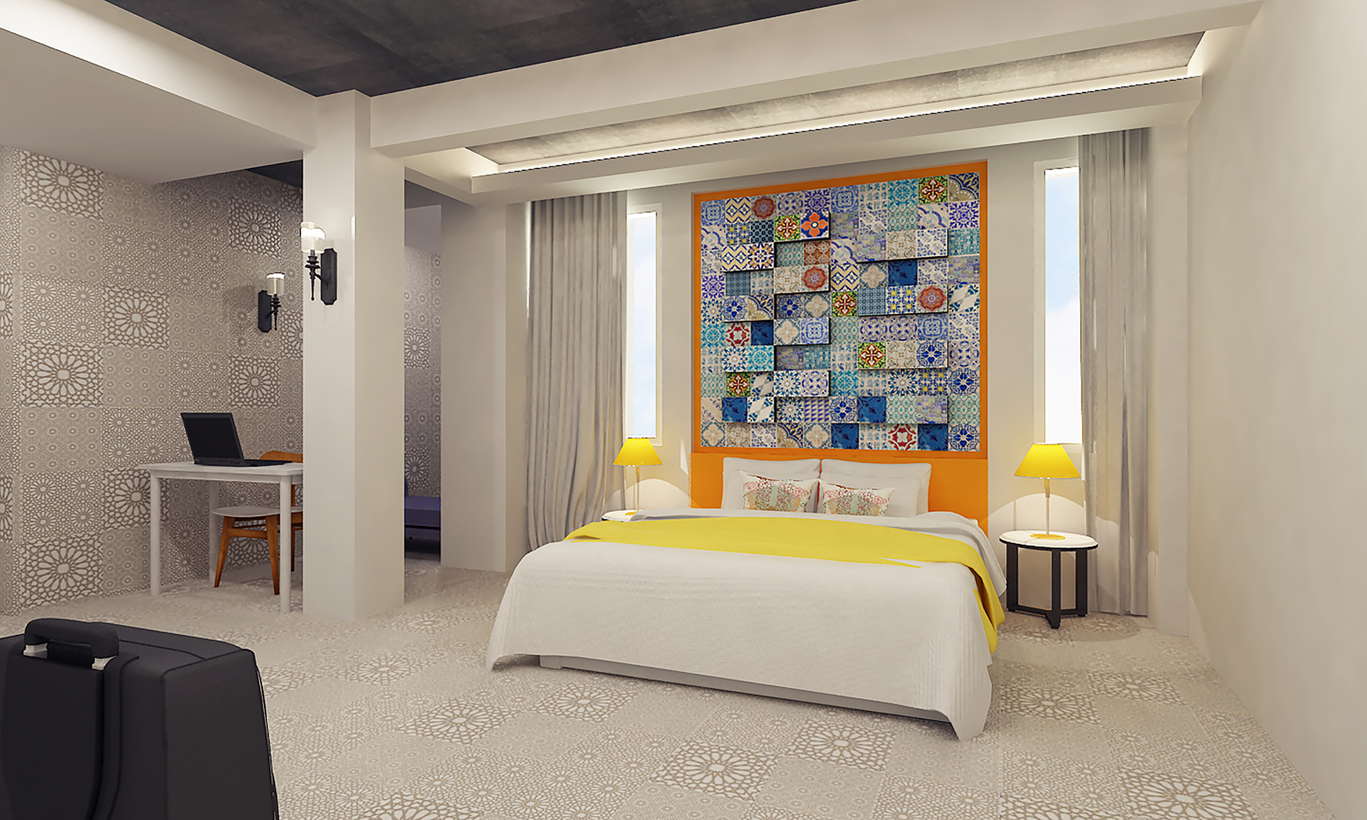 From the moment you step inside the Azulejos Room, the mosaic wall commands attention with its eye-catching collage of painted ceramic tiles glazed with tin. Popular in Portuguese architecture, these Azulejos tiles graced both the interiors and facades of palaces, churches, schools, and homes with swirls of vibrant colours and patterns that told of legends and historical milestones. More than just decorative, they also helped regulate temperature by protecting against heat and dampness. The tiles brighten up this well-lit room that sleeps two comfortably, with space for an additional bed.
