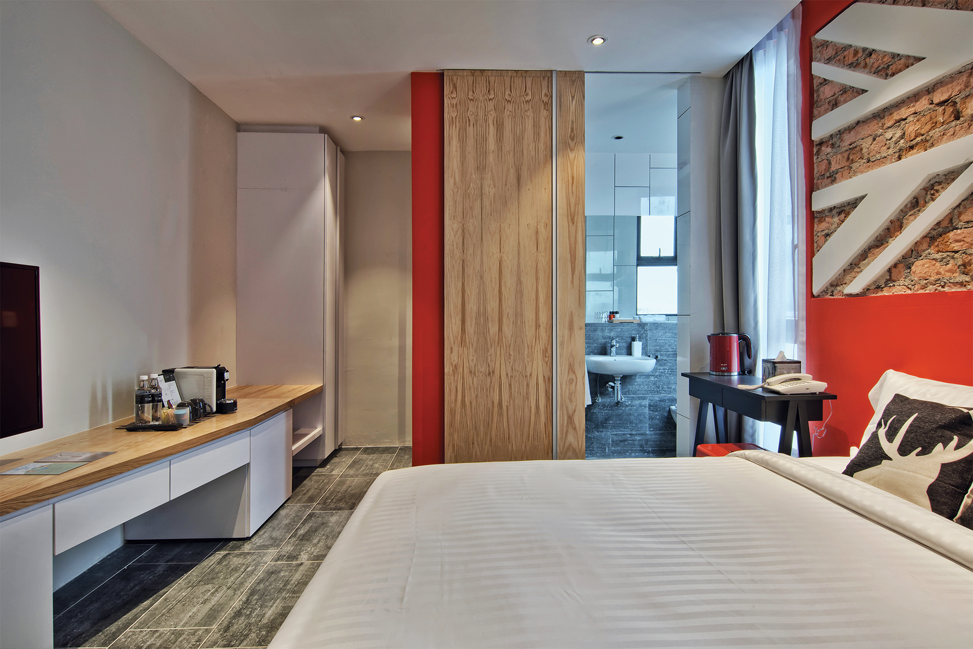 The Union Jack flies proudly in the room named after it and inspired by 1960s Britain. Drawing on the zeitgeist of that era, this double room is ensconced in the very things that made London the world capital of cool. Walls are coated an intense red that references the iconic pillar boxes and double-decker buses, contemporised with a cool palette of whites and greys. Book your stay for a throwback to the carefree optimism of Swinging London.