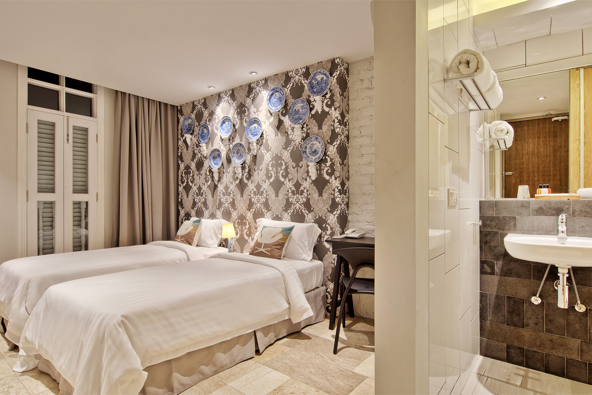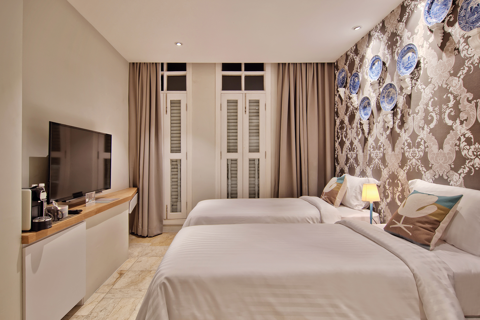 Crumbly scones, dainty sandwiches and pretty little cakes disappear bit by bit from a tiered stand while conversations flow as easily as freshly brewed tea pours from fine bone China pots. The quintessential English afternoon tea is one of the most fulfilling indulgences, harking to an unhurried pace where life is celebrated in the simplest ways. Our Victorian Room carries on in the same vein, a handsome abode with twin beds crowned by an overhanging damask panel where blue and white porcelain plates take pride of place. The classic flair is tempered with 21st-century comforts and conveniences that every modern traveller would appreciate.