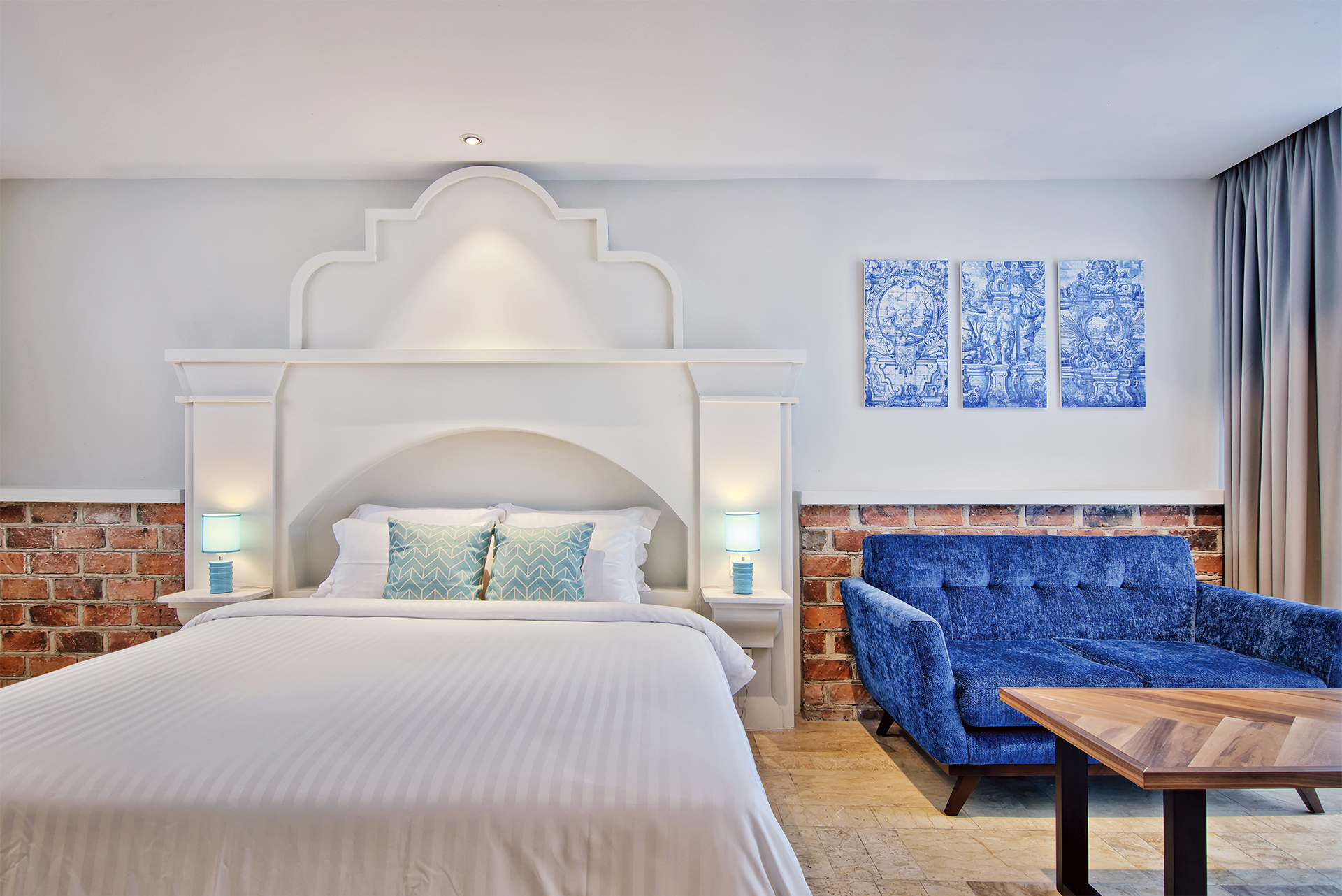 With pristine white interiors and ocean blue trims, the Fortaleza Suite may suggest a coastal inspiration but its influence came from a far loftier place – the Fortaleza de Malaca, or Fort of Melaka. Encircling St Paul’s Hill, where the A’Famosa stands, the fort comprised four bastions and supported 70 cannons. The Portuguese were so well protected within its 2m-thick walls that they managed to fend off the Dutch for five months. Fortaleza Suite affords guests the same peace of mind, conceived as a refuge to unwind in style after a day of exploring Melaka’s nostalgic charm.
