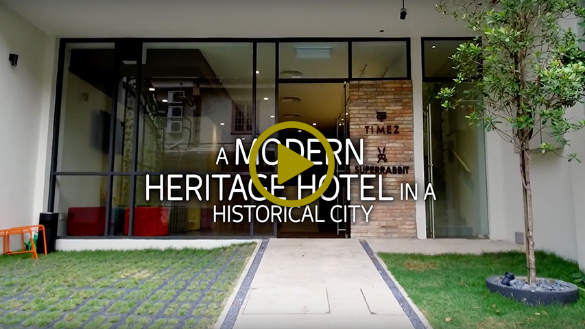 Tucked in a row of shophouses, Timez stands out with its chic, minimalist outlook. Long wooden shutters that characterise much of Melaka’s pre-war buildings are set against a monochromatic facade to spell out the hotel’s modern heritage concept. Leading to the entrance is a landscaped walkway, a mini oasis designed to be a breathing space amidst the bustle of Jonker Street. Step in for an authentic experience that is unique to Melaka.